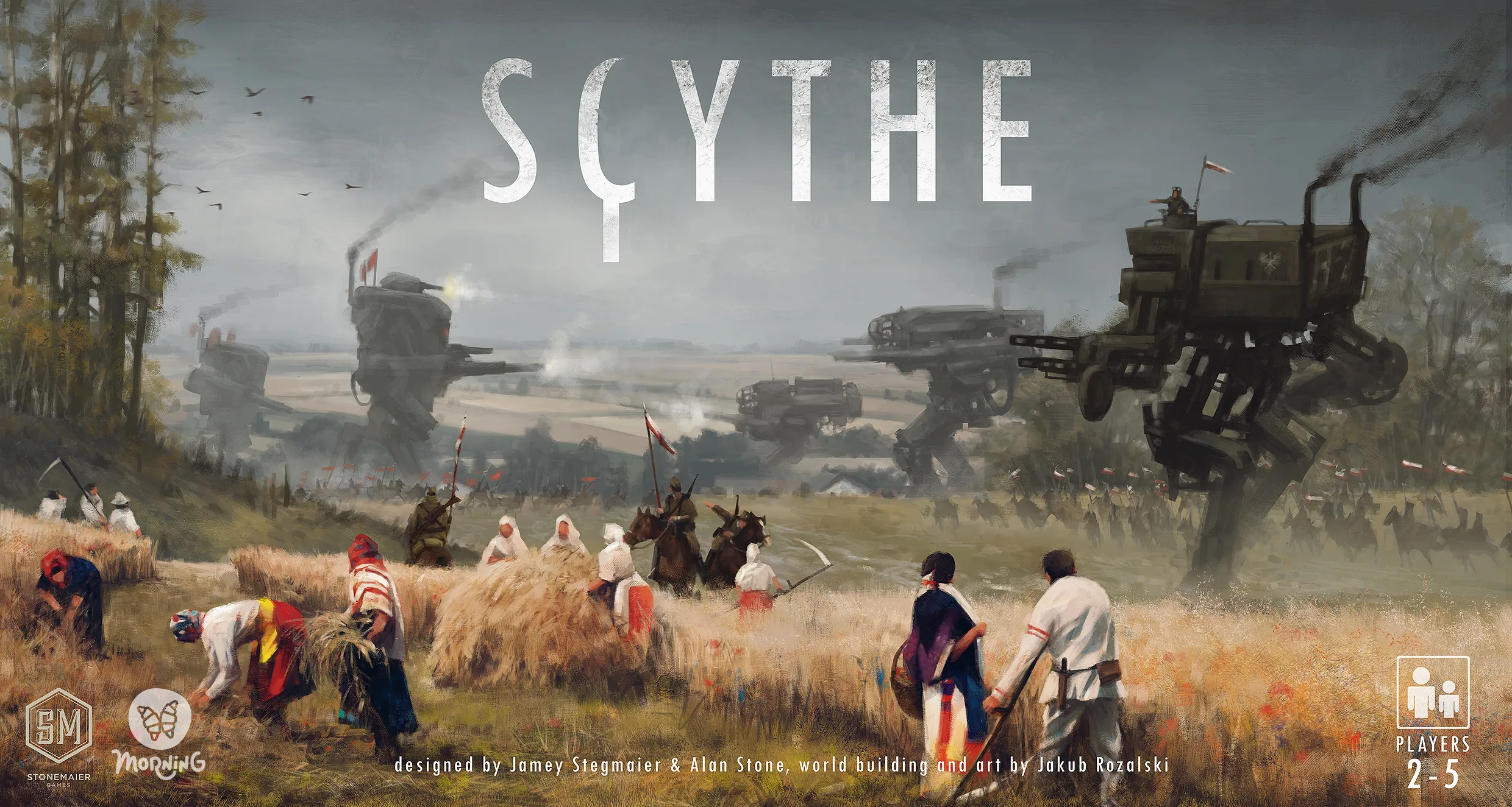 Dans Scythe, vous incarnez un héros à la tête d’une des cinq factions dont le but est d’assurer la suprématie de son peuple par la conquête de territoires. Vous dirigerez ouvriers et soldats afin d’asseoir l’autorité de votre empire. Pour triompher de vos adversaires, vous devrez exploiter vos ressources de manière optimale et gérer votre supériorité technologique.